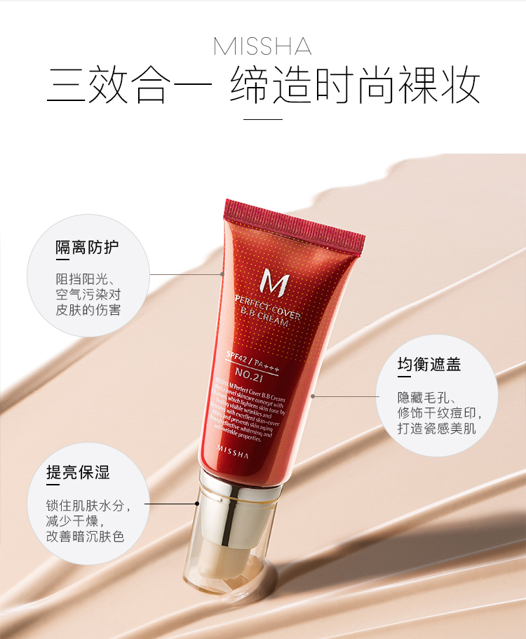 谜尚(MISSHA)魅力润颜修容霜SPF42/PA+++[21号]50ml(气垫bb霜粉底遮瑕保湿防晒)(新老包装随机发货)