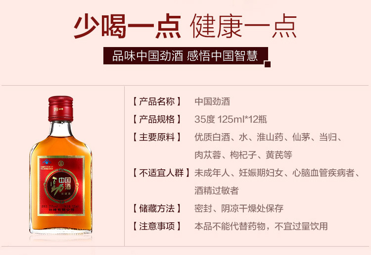 劲牌 劲酒 中国劲酒 35度 125ml*12瓶 礼盒装
