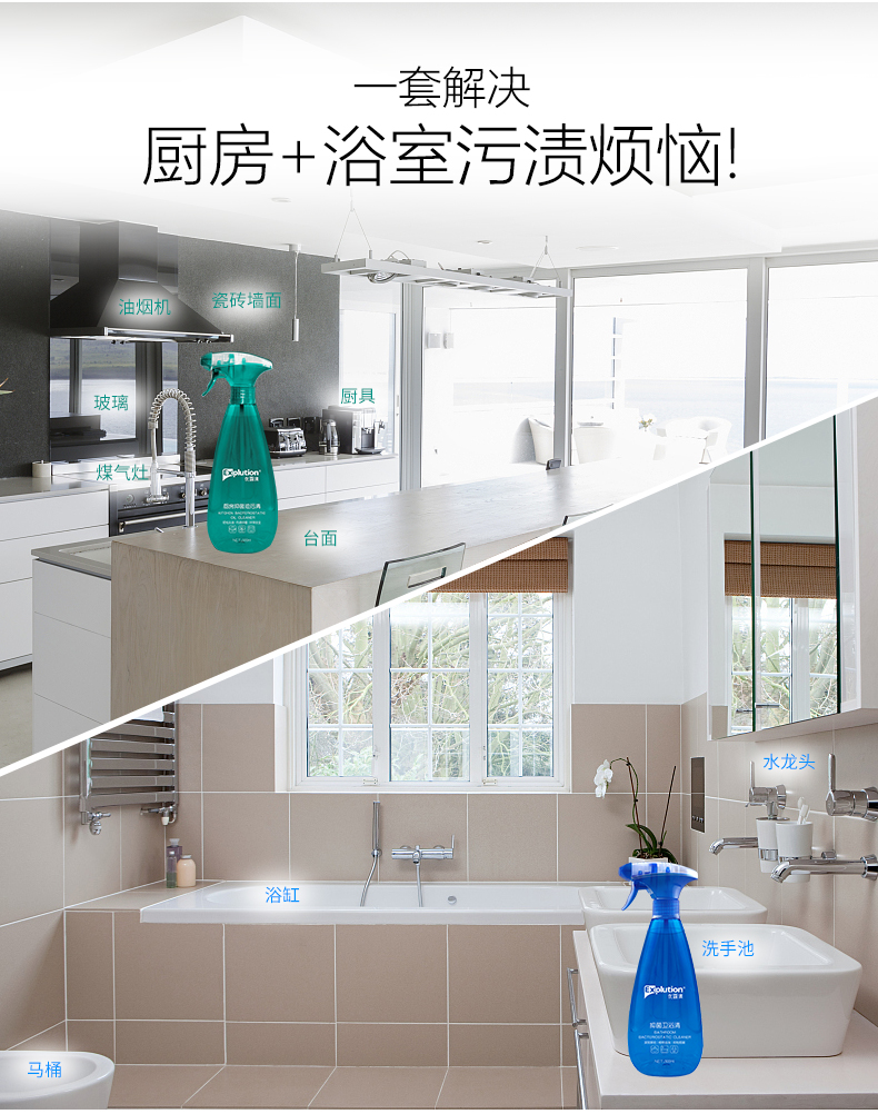 优露清(Explution) 油烟机清洗剂瓷砖浴室清洁剂厨房油污浴室玻璃清洗液厨卫清洁套装1L